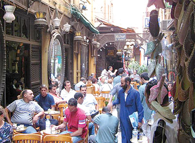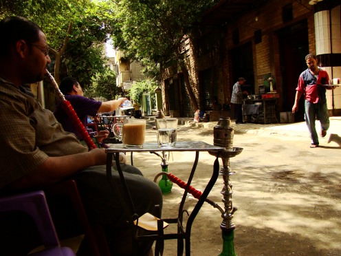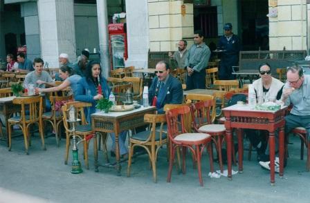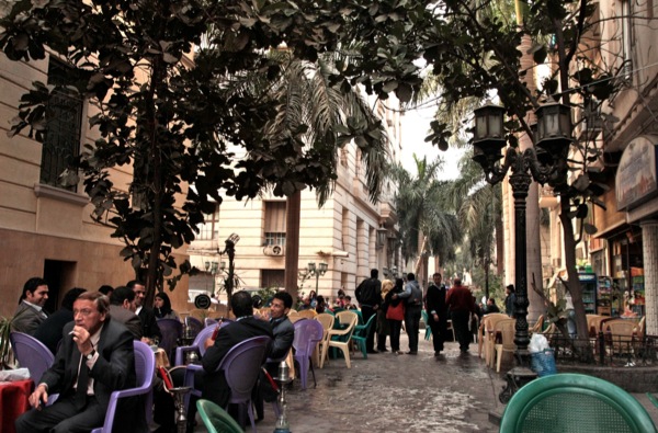 فحين قدومك من ميدان التحرير أشهر ميادين القاهرة وأيقونة الثورة المصرية التي أطاحت بنظام الحكم السابق، باتجاه ميدان طلعت حرب بمنطقة وسط البلد (سرة العاصمة) والتي تشتهر بمبانيها القديمة ذات الطرز المعمارية المتنوعة، وكذلك محلات بيع الملابس والشركات والبنوك، يلفت نظرك وجود العديد من المقاهي الشعبية المفتوحة في الهواء الطلق، والتي تحمل رائحة وعبق القاهرة القديمة بثقافتها وأصالتها الشعبية، ويمثل روادها خليطا من الطبقات المثقفة والأجانب، ولا تتعدي أسعارها الدولار الواحد لكوب الشاي المعبق بأعواد النعناع الأخضر، ستندهش للحشود الكبيرة التي تجلس على طاولات هذه المقاهي، خاصة من السياح وفي فصل الشتاء.