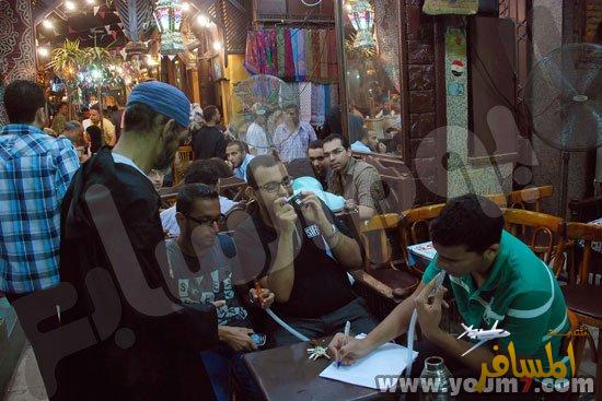 بالصور.. مقاهى الحسين وخان الخليلى فى أول أيام رمضان.. غناء وعزف بالعود.. وصاحب الفيشاوى: المقاهى مفصولة عن الواقع السياسى منذ الثورة