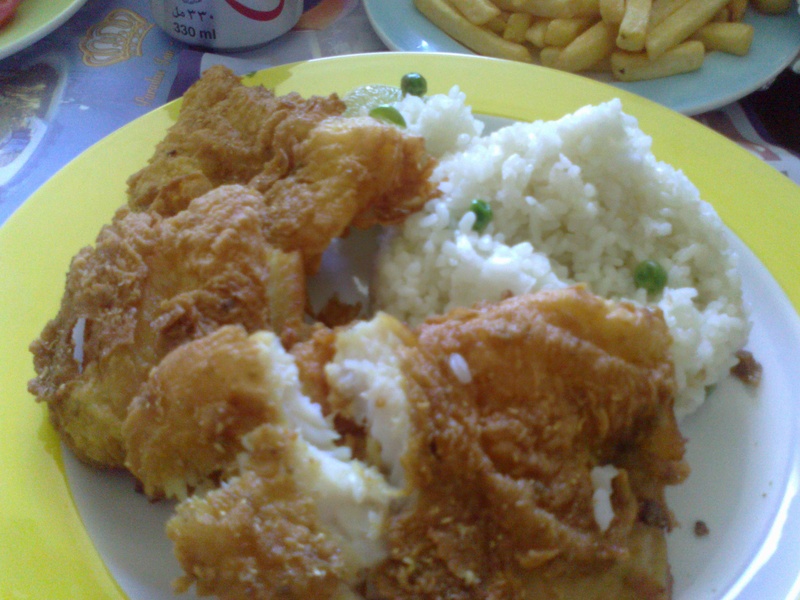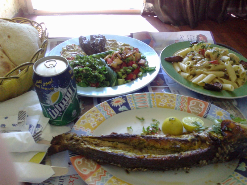 سمك البوري مع مكرونة سي فود طيبة جدا جدا وسلطة سورية