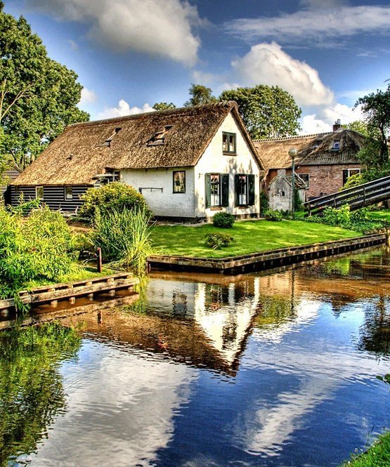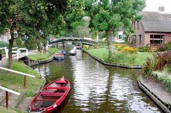 قرية جيثورن الهولندية يتنقل سكانها بالقوارب او سيرا على الاقدام عبر الجسور ، ويطلق عليها بندقية الشمال،والغريب انه يوجد فيها شارع واحد مخصص لركوب الدراجات فقط.