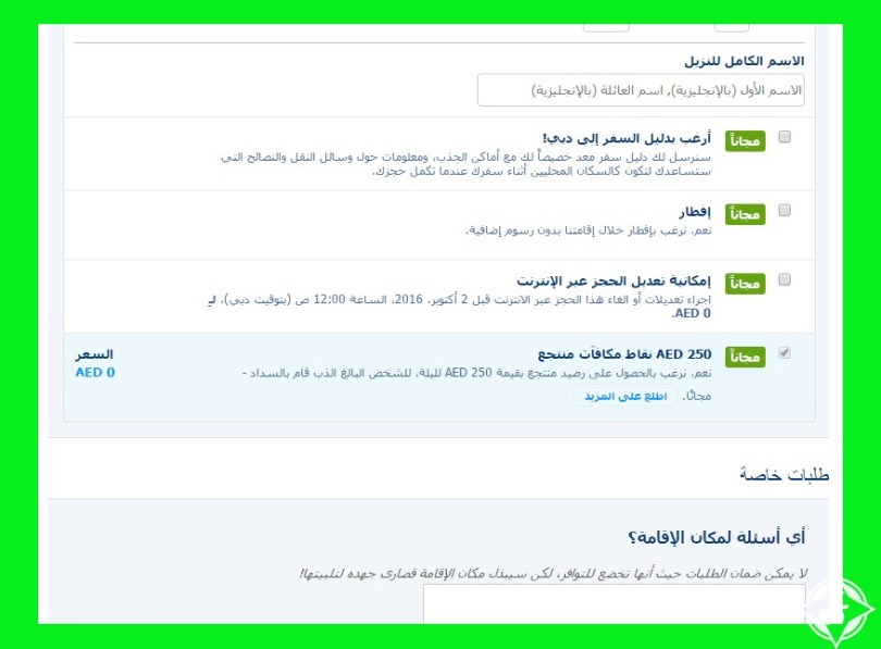 والآن نحدد الوجهة التي نسافر إليها وتاريخ الإقامة، مثلا: دبي يوم 3 من شهر أكتوبر إلى غاية يوم 10 من نفس الشهر.