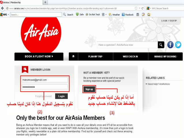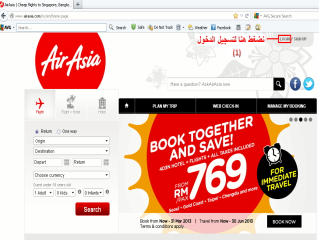 1- إذهب إلى الرابط التالي (يُستحب أن يكون لديك حساب في أير أسيا) :