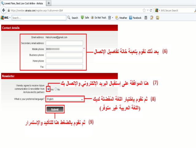 – بعد ذلك نقوم بتعبئة الخانة الخاصة بتفاصيل الإتصال كما هو واضح في الصورة أعلاه عند النقطة رقم (6)
