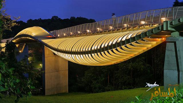 يتميز الجسر بشكل فريد ومميز علي شكل أمواج من 7 ضلوع بالتبادل مع المعدن المموج الذي يرتفع وينخفض علي متن الجسر نفسه الذي يأخذ شكل القارب. يغطي هذا الجسر مساحة 284 متر فوق طريق “هيندرسون” والذي يتكون من 7 ممرات على طول الساحل الجنوبي للجزيرة. وهو يعتبر الأكبر من نوعه في جنوب شرق آسيا.