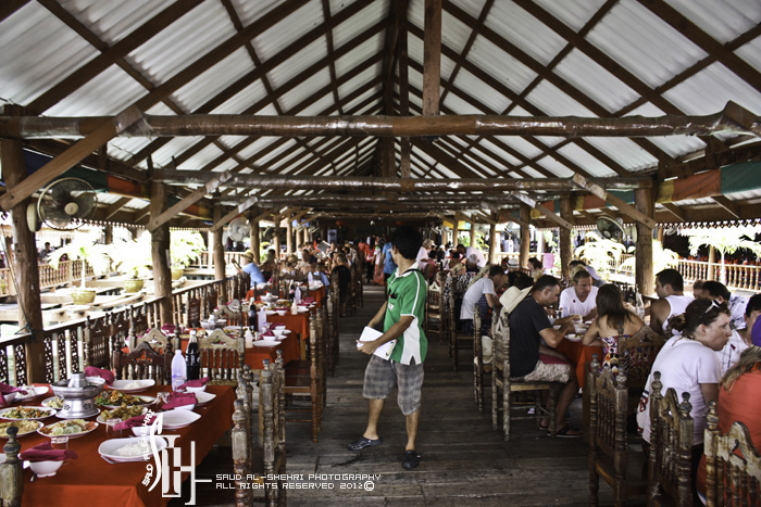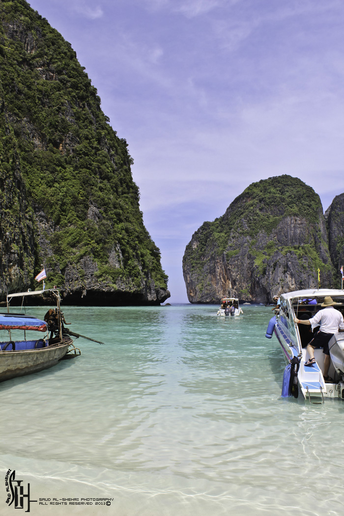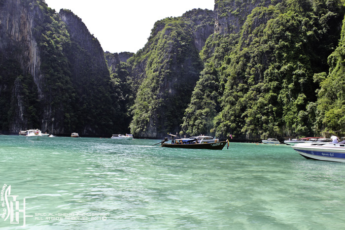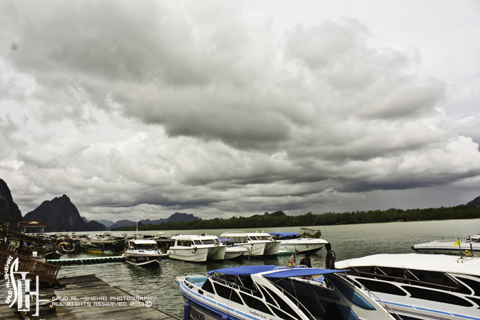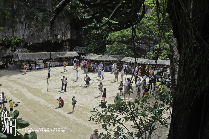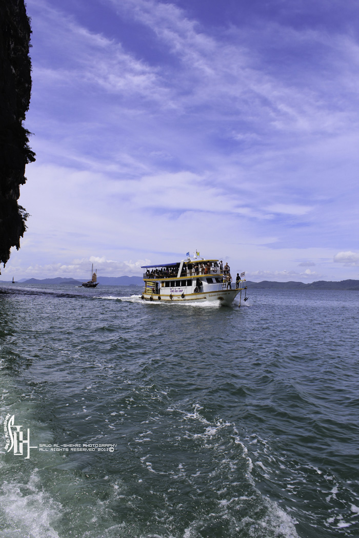 وصلنا لسفينه كبيره نركب من هناك قوارب صغيره لاخذ جوله حول المكان