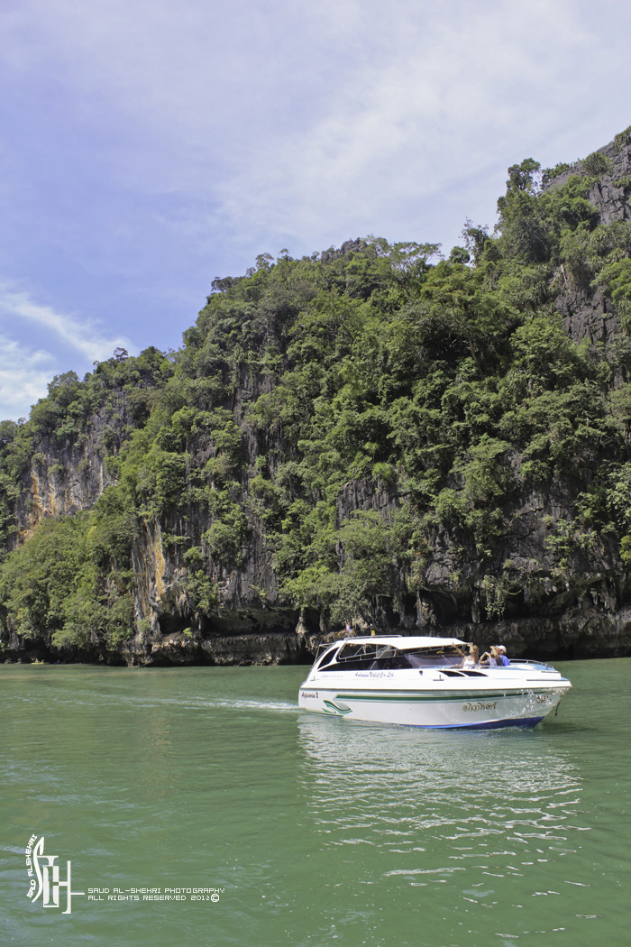 بعد الراحه لمدة يوم تم الحجز على جزيرة جيمس بوند بالقارب السريع والغداء البحري من احد الكشكات على الشاطئ