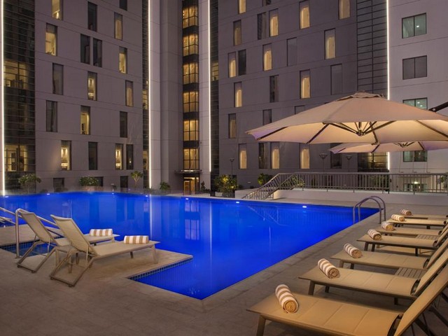استمتع بالسباحة في هامبتون باي هيلتون مطار دبي