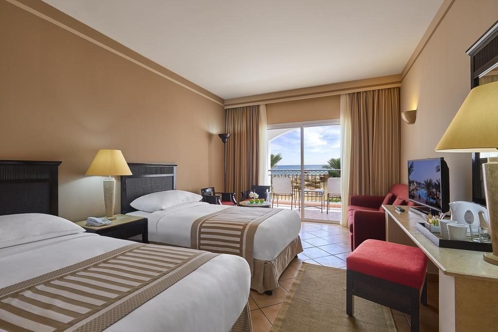 تتمتع غرف النزلاء بمناظر تطل على البحر وجبال سيناء وحمام السباحة والحدائق كما أن جميعها مكيفة وملحقة بشرفة أو تراس والكثير من التجهيزات التي تضمن إقامة رائعة بمستويات رفاهية ممتازة مثل جهاز تلفاز مع قنوات فضائية وهاتف وآلة تحضير القهوة والشاي كما تضم الغرف حمام مجهز بدش ومجفف شعر في حين يمكن استعمال ميني بار لقاء دفع تكاليف إضافية.