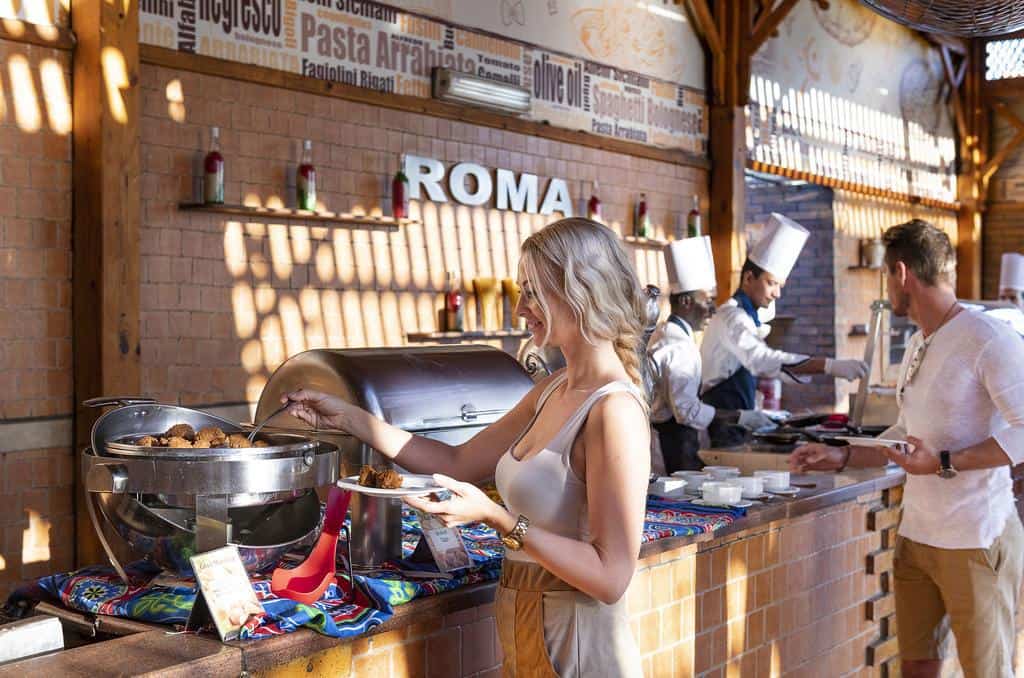 يقدم المطعم الرئيسي مجموعة من الأطباق اللذيذة من أشهر المطابخ العالمية والمحلية على شكل بوفيه مفتوح.