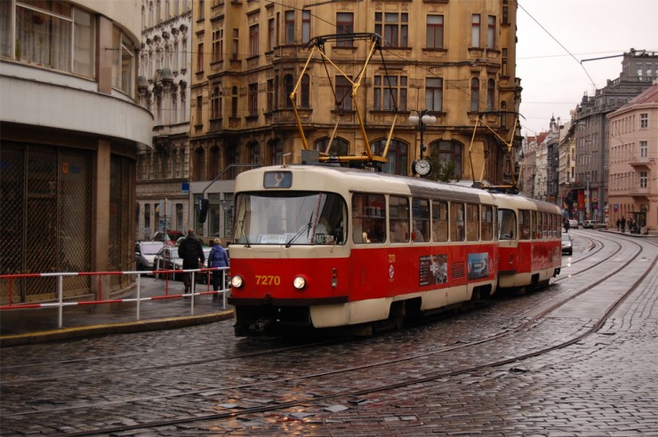 يمكن التنقل في براغ بواسطة شبكات المترو وسكك الحديد المحمولة والقاطرات الكهربائية(الترام) ووسائل النقل الأخرى كالباصات وسيارات الأجرة. مطار روزيني الدولي هو مقر الخطوط الجوية التشيكية ويستقبل حوالي 10 ملايين راكب سنويا ويبعد حوالي 10 كم عن وسط المدينة.