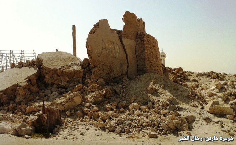 اطلال لم يتبقى من أثر تلك الشموخ سوى بقايا برج دائري لم يتبقى سوى أساساته وجزء من أقواس ممتدة لأجزاء المبنى الكبير الذي حمل اسم دارين على مستوى الخليج وطل الى مئات السنين معلما شامخا لبقايا حضارة أندثرت.