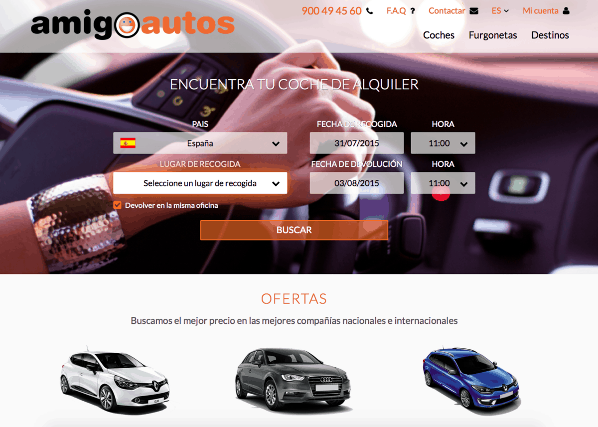 كنت قد قررت استئجار سيارة europ car ولكني وجدت سعرها مرتفع جدًا وتفاجأت بالأسعار، وبعد سؤال بعض المحلات في إسبانيا، حجزت عن طريق موقع محلي لتأجير السيارات هو amigoautos كان الحجز سهل جدًا عن طريق هذا الموقع حيث يقوم هذا الموقع بالبحث عن السيارات المتوفرة في أغلب مكاتب الاستئجار الإسبانية، كان سعر السيارة غير شامل التأمين وهناك بعض الرسوم الأخرى التي قد يطلبها مثلًا؛ اذا كنت ستأخذ السيارة من مدينة وتسلمها في مدينة أخرى (50 يورو).