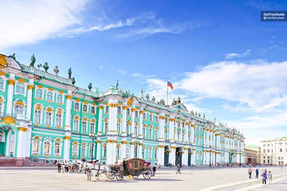 تجول بمتحف هيرميتاج العالمي بمدينة سانت بطرسبرغ العريقة ضمن زيارة ارشادية تستمر لثلاث ساعات مشبعة بروائع الفن الأوربي الغربي , فبإمكانك السير دخل قاعات الاستقبال في القصر الشتوي واخذ بعض الوقت لتستكشف بنفسك المتحف و صالة القصر الشتوي في الوقت المتبقي من يومك.