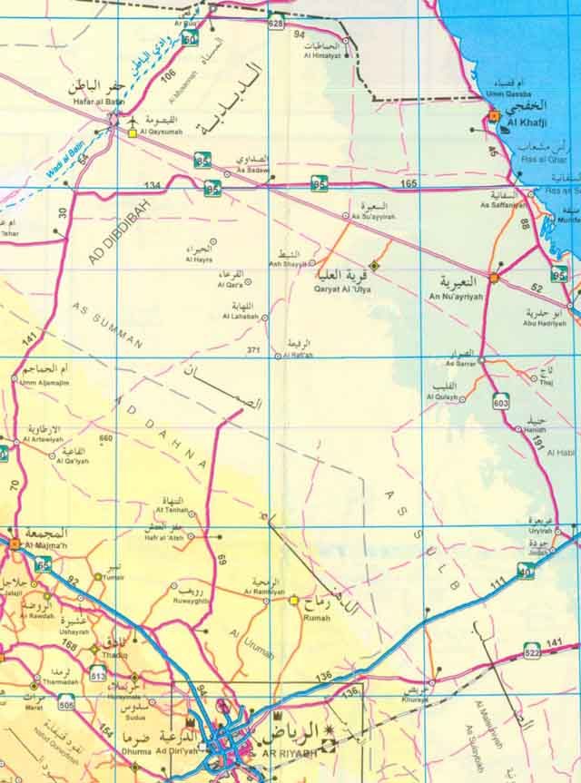 أما طريق الدمام + ابو حدرية + الخفجي وو…. هذا يسلك في حالة ان كنت في منطقة الشرقية، وطريق المجمعة يفي بالمطلوب.